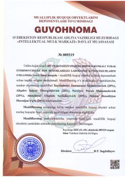 8 | №009318 | Darslik –"VOKAL" | Sharipov Azamat Shonazarovich (100%) | Sharipov Azamat Shonazarovich | 10/10/2025 | ![]() |