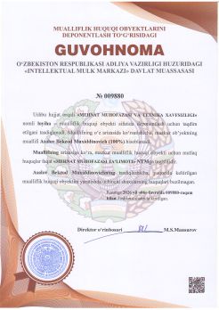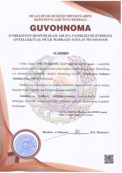 | 229 | №009889 | Tasviriy san’at asari – "FIL VOQEASI" | Abdullayeva Gulhayo Abdullayevna (100%) | Abdullayeva Gulhayo Abdullayevna | 02/09/2026 | ![]() |