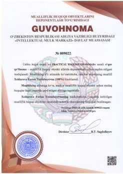 301 | №009022 | O‘quv qo‘llanma – "A PRACTICAL ENGLISH GRAMMAR" | Xoldarova Fariza Tuxtabayevna (100%) | Xoldarova Fariza Tuxtabayevna | 19.06.2025 | ![]() |