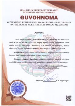 354 | №008969 | Monografiya –"ҲОЖИ МУИН МАЪРИФАТ ВА ИСТИҚЛОЛ ФИДОЙИСИ" | Namazova Nilufar Kambarkulovna (100%) | Namazova Nilufar Kambarkulovna | 09.06.2025 | ![]() |
