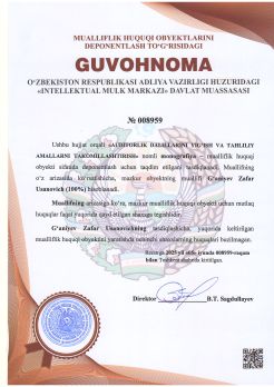371 | №008952 | Ilmiy ishlanma (metod) – "INNOVATIVE ENGINEERING SIMULATION" | Tsukanova Yelena Nikolayevna (100%) | Tsukanova Yelena Nikolayevna (100%) | 04.06.2025 | ![]() |