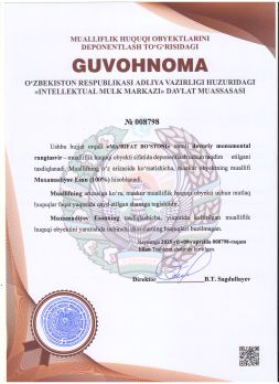 525 | №008798 | Devoriy monumental rangtasvir – "MA’RIFAT BO’STONI" | Muxamadiyev Esan (100%) | Muxamadiyev Esan | 04/09/2025 | ![]() |
