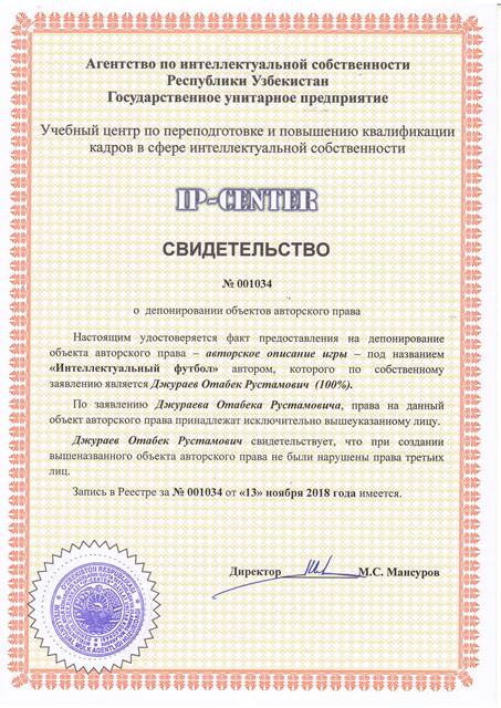 | 9127 | №001034 | Авторское описание игры - "Интеллектуальный футбол" | Джураев Отабек Рустамович (100%) | Джураев Отабек Рустамович | 11/13/2018 | ![]() |
