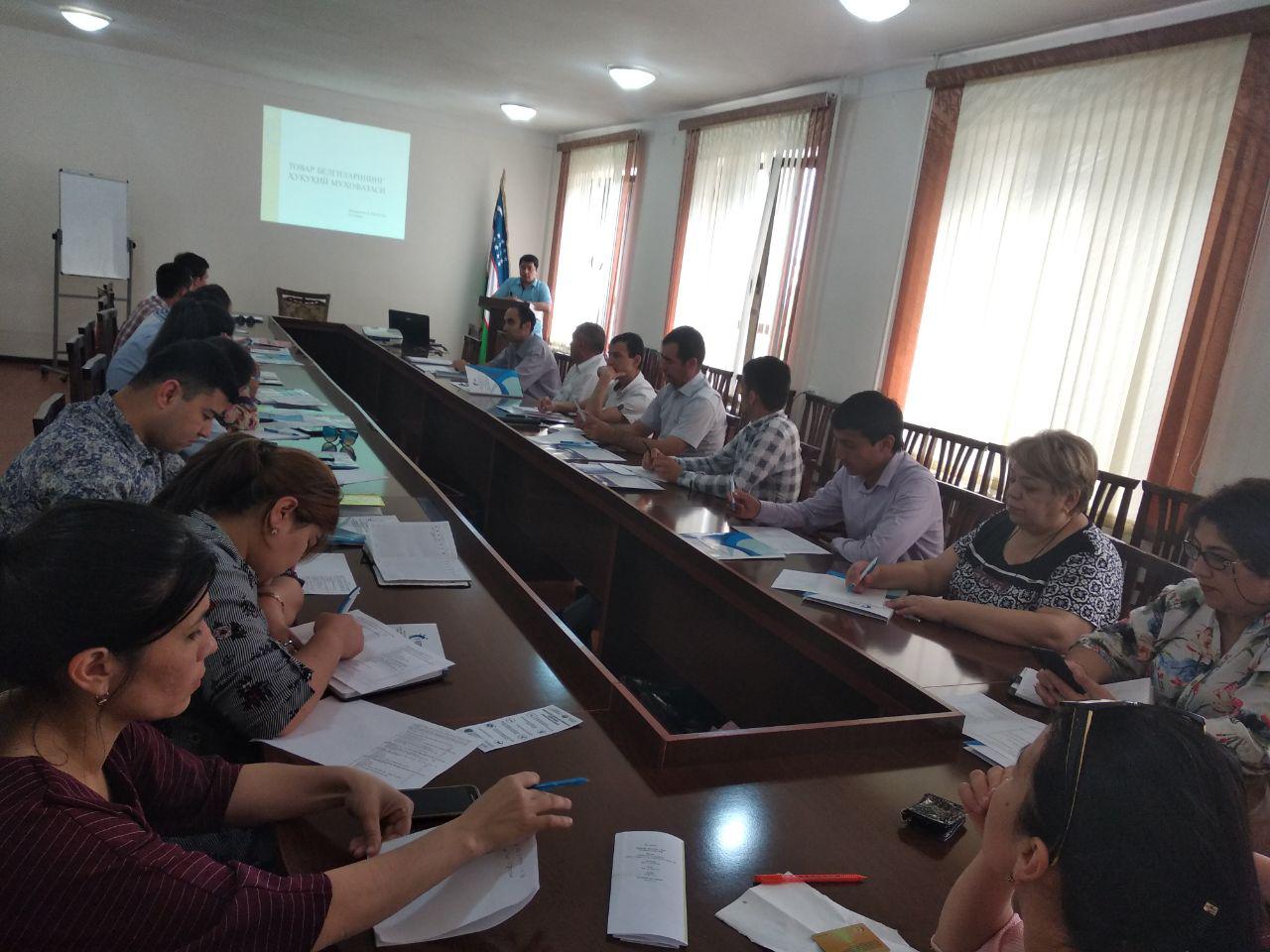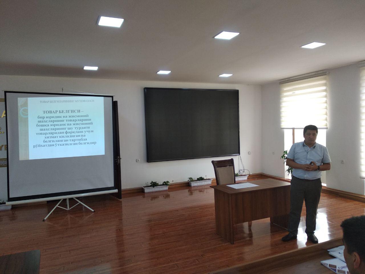 2019 yil 16 va 17 may kunlari O'zbekiston Respublikasi Adliya vazirligi huzuridagi Intellektual mulk agentligi, agentligning “IP-Center” DUKsi xamda Navoi va Buhoro viloyatlari Savdo-sanoat palatasi bilan hamkorlikda mintaqalarning tadbirkorlik sub'ektlari vakillari ishtirokida "Intellektual mulk ob'ektlarining huquqiy muhofazasi" mavzusida navbatdagi seminarlar o'tkazdi.