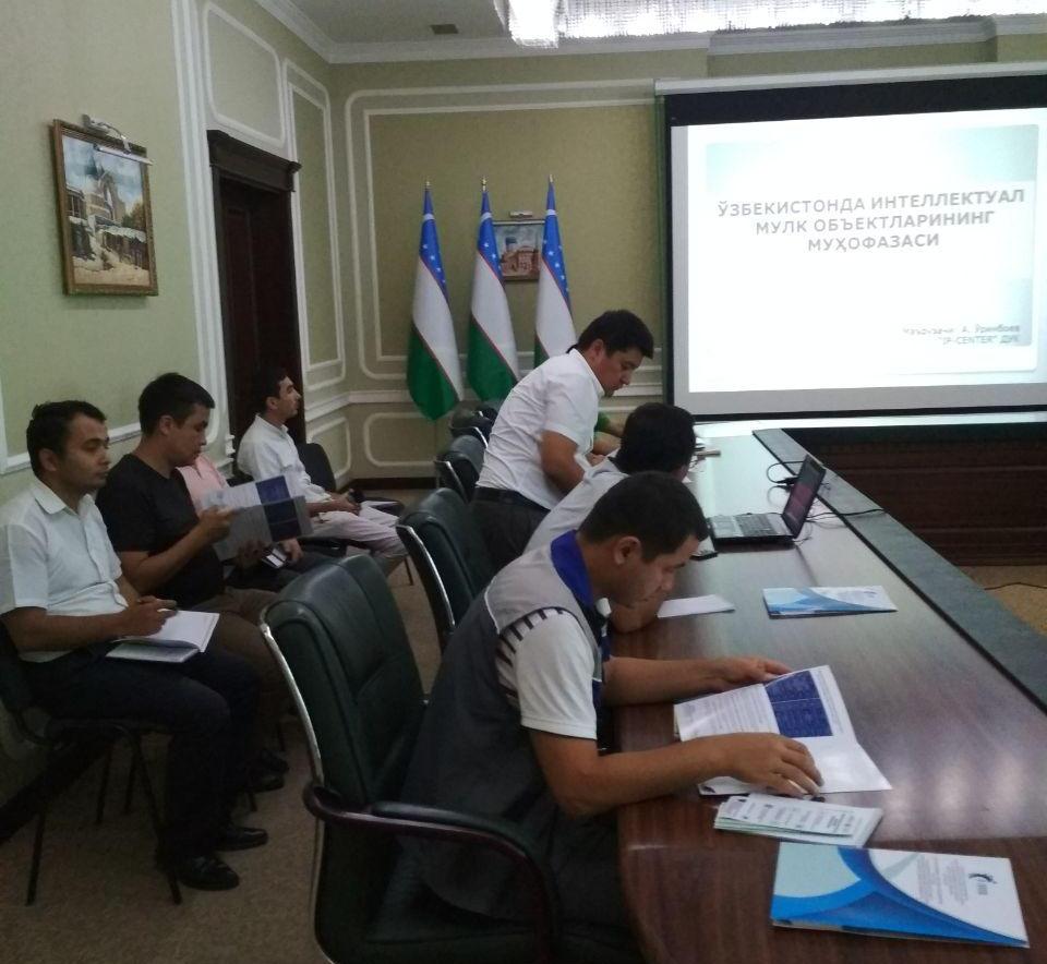 2019-yil 23-avgust kuni “Navoiy” Erkin iqtisodiy zonasi direksiyasida "O'zbekistonda intellektual mulkning huquqiy muhofazasi" mavzusida navbatdagi seminar o'tkazdi.