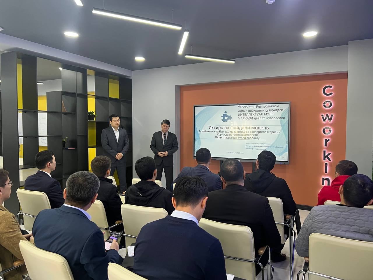 Seminarda Аxborot resurs va TIQQMlar bilan ishlash bo‘lim boshligʼi S.Raxmanov va Ixtirolar va foydali modellar bo‘lim boshlig‘i I.Аbduqodirovlar ixtirolar va foydali modellarni davlat ro‘yxatidan o‘tkazish uchun talabnoma topshirish, elektron xizmatlardan foydalangan holda ish yuritish jarayonida yuridik ahamiyatga molik yozishmalarni yuritish masalalari alohida ko‘rib chiqildi. Ixtiro yoki foydali modelga talabnoma topshirishda, shuningdek ekpertiza bosqichida talabnomalar bo‘yicha yozishmalarni amalga oshirishda yo‘l qo‘yiladigan xato va kamchilik muhokama qilindi.