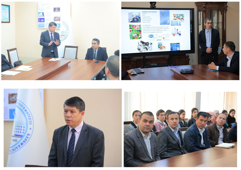 Oʼzbekiston Respublikasi Prezidentining 2021 yil 28 yanvardagi “Intellektual mulk obʼetlarini muhofaza qilish tizimini takomillashtirish chora-tadbirlari toʼgʼrisida”gi PQ-4965-son qarori ijrosini taʼminlash hamda joylardagi Texnologiya va innovatsiyalarni qoʼllab quvvatlash markazlari (TIQQM) da seminarlar oʼtkazish yuzasidan 2023 yil uchun tasdiqlangan Tarmoqli reja asosida joriy yilning 18-aprel kuni O‘zbekiston Respublikasi Аdliya vazirligi huzuridagi “Intellektual mulk markazi” davlat muassasasi vakillari tomonidan Urganch davlat universiteti TIQQMli hamkorligida “Chet davlatlarda patent guvohnomalarini olish” hamda “Ixtiro va foydali modelga protatip tanlash” mavzularida seminar o‘tkazildi.