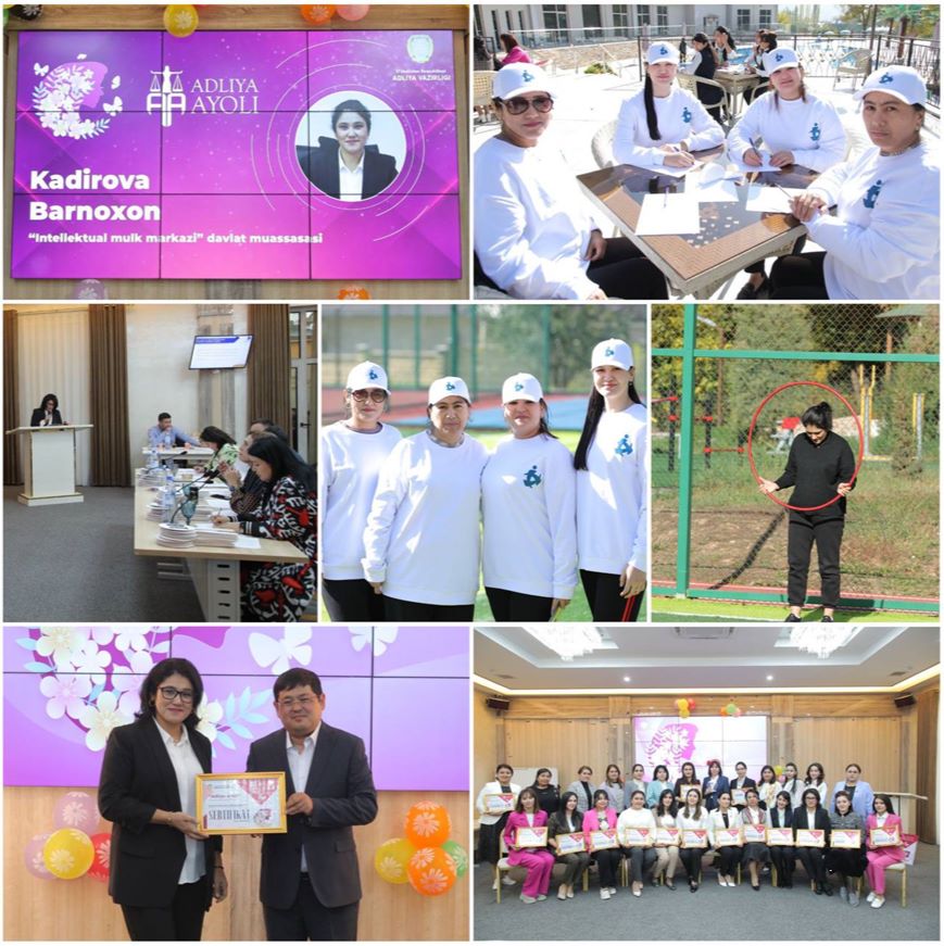 Adliya vazirining 29.09.2023 yildagi 260-um-sonli “O‘zbekiston Respublikasi adliya organlari va muassasalarida faoliyat yurituvchi xotin-qizlar o‘rtasida “Adliya ayoli” tanlovini tashkil etish to‘g‘risida”gi buyrug‘ining ijrosi yuzasidan joriy yilning 16-17- oktabr kunlari, Olmos konvension maskanida O‘zbekiston Respublikasi adliya organlari va muassasalarida faoliyat yurituvchi xotin-qizlar o‘rtasida “Adliya ayoli” respublika tanlovi bo‘lib o‘tdi. Tanlovda “Intellektual mulk markazi” davlat muassasasi xodimlari B.Kadirova, F.Shamansurova, U. Nishonova, N. Nasirillayevalar ishtirok etdilar. Tanlovni oʻtkazishdan asosiy maqsad adliya organlari va muassasalarida faoliyat yurituvchi xotin-qizlarni qoʻllab-quvvatlash va ragʻbatlantirish, ularning ijtimoiy-siyosiy faolligini yuksaltirish hamda faoliyatda tashabbuskorlik va yuqori natijalarga erishishga intilish samaradorligini oshirishdan iborat.