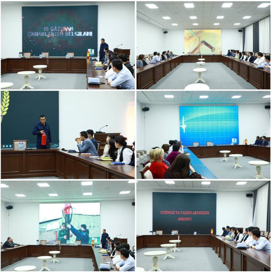 Joriy yilning 6 dekabr kuni O‘zbekiston Respublikasi Adliya vazirligi huzuridagi Intellektual mulk markazida “Yong‘in xavfsizligi oyligi” doirasida Toshkent shahar Shayxontoxur tumani Favqulodda vaziyatlar bo‘limi profilaktika va nazorat bo‘linmasi xodimi ishtirokida “Favqulodda vaziyatlarni oldini olish, yong‘in xavfsizligi ta’minlash hamda ushbu holatlarda xarakat qilish” mavzusida tadbir otkazildi.