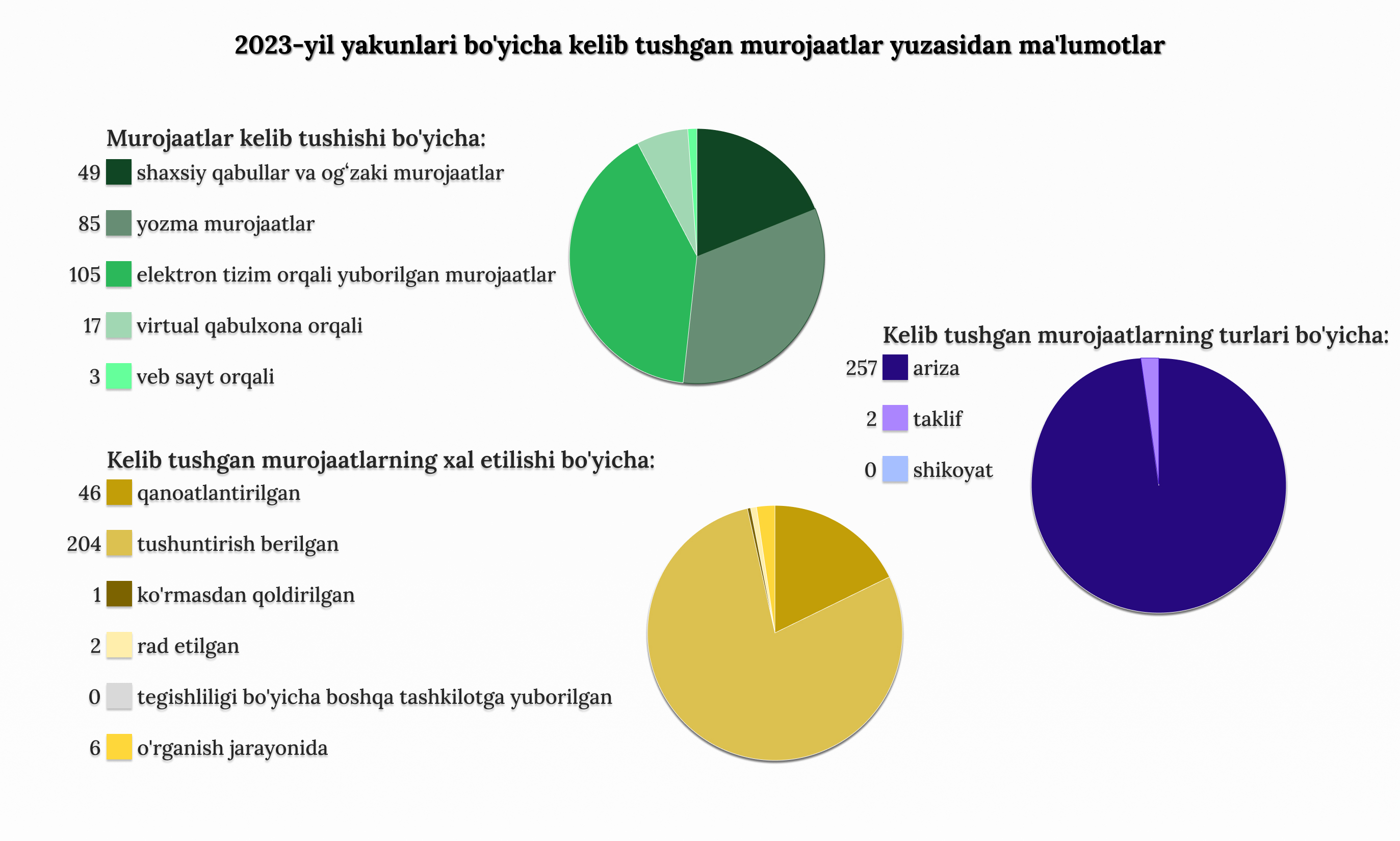 2023-yil yakunlari bo'yicha kelib tushgan murojaatlar yuzasidan ma'lumotlar.